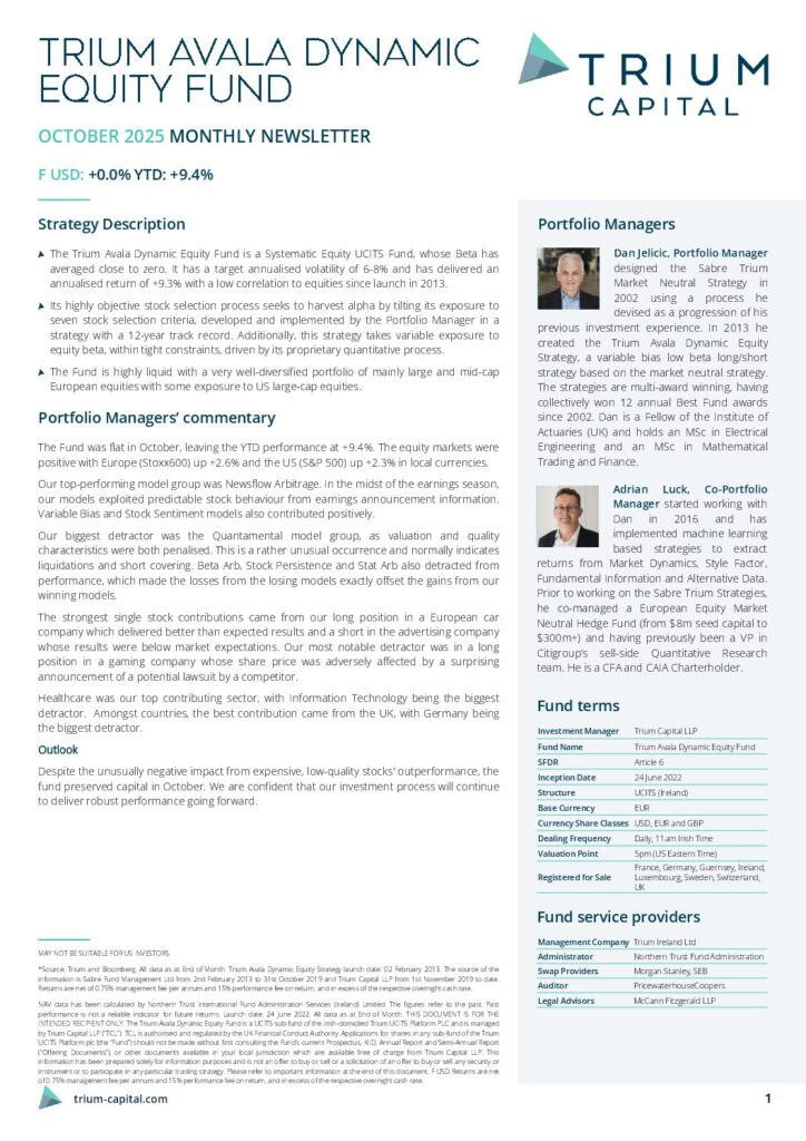 Trium Avala Dynamic Equity Fund | SFDR Article 6 Disclosure