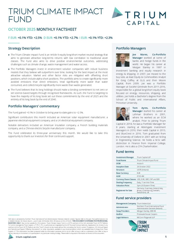 Trium Climate Impact Fund | SFDR Article 9 Disclosure