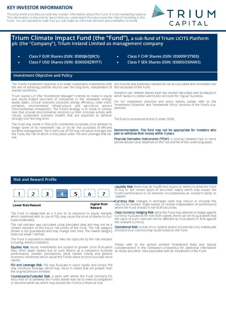 Trium Climate Impact Fund | KIID | F Class