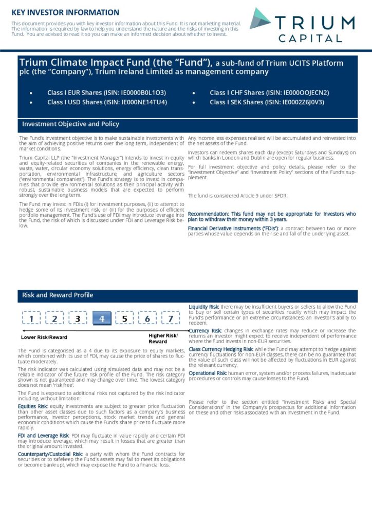 Trium Climate Impact Fund | KIID | I Class