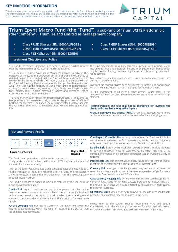 Trium Epynt Macro Fund Fund | KIID | F Class