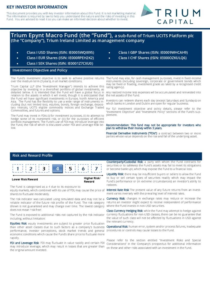Trium Epynt Macro Fund Fund | KIID | I Class