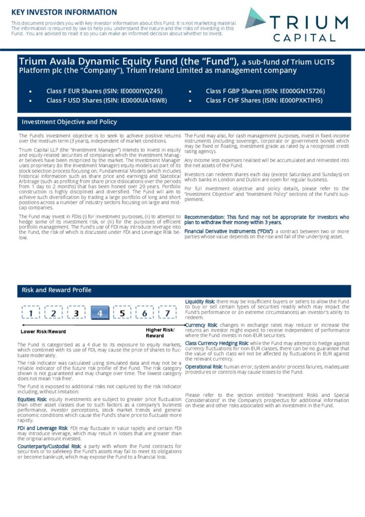 Trium Avala Dynamic Equity Fund | KIID | F Class