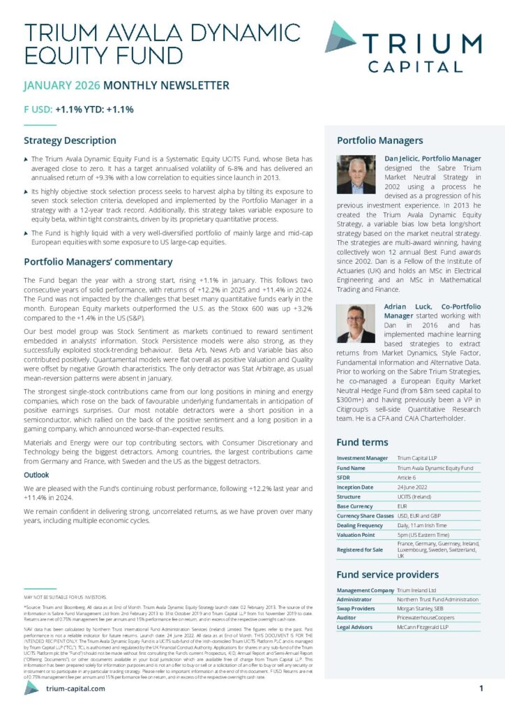 Trium Avala Dynamic Equity Fund | SFDR Article 6 Disclosure