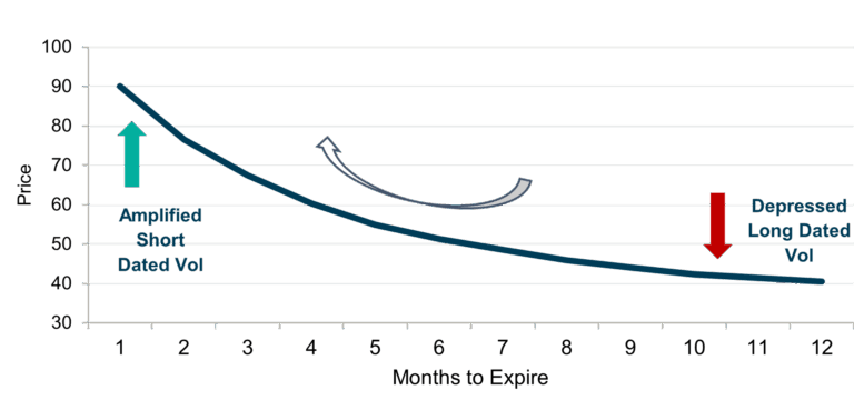 The price of volatility should be thought of as representing the cost of hedging: as the future becomes more uncertain the further you go out, the cost of hedging further out into the future should rise. This is precisely the fundamental relationship we see embedded in the VIX futures’ curve. This fundamental characteristic has led to very steep volatility curves, and where there is a slope, there is a carry trader.